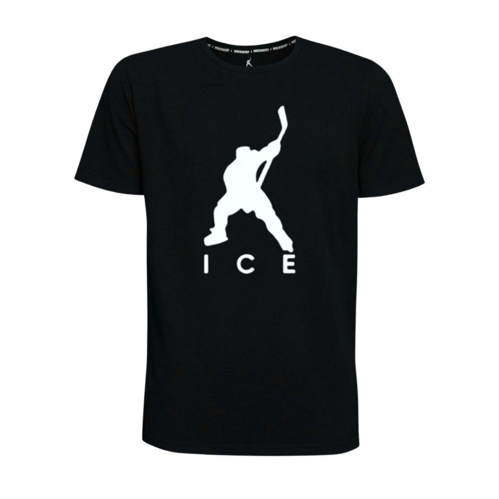 Футболка с белым средним хоккеистом гель и надписью под ним ICE