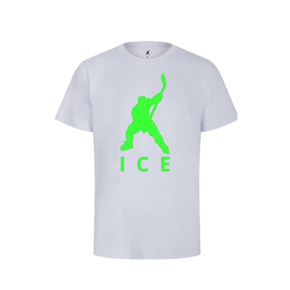 Футболка с салатовым средним хоккеистом гель и надписью под ним ICE